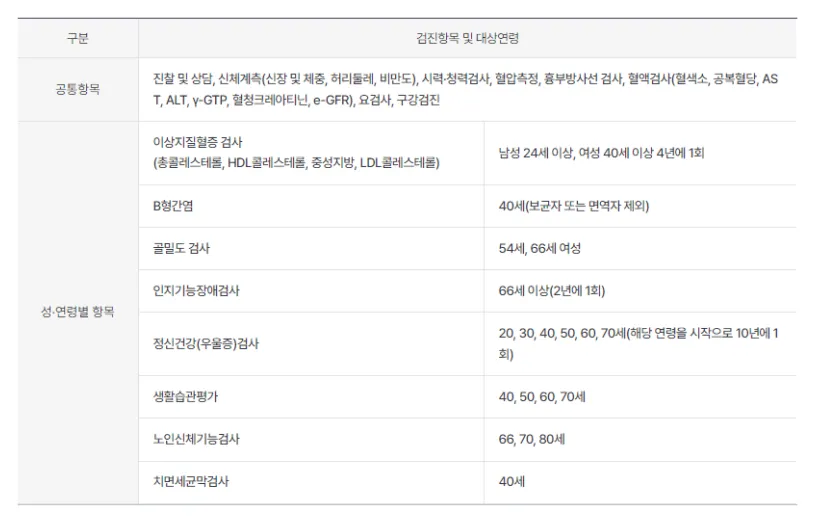 | 직장피부양자 | 20세 이상 피부양자 | 2년에 1회 |