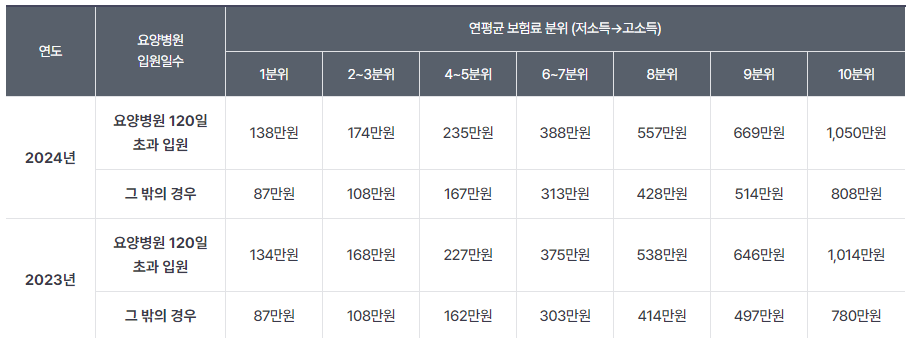 지역 가입자인지 직장 가입자인지 본인의 분위 구간을 아래 표로 확인하면 됩니다.