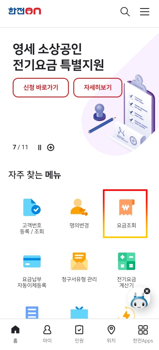 모바일 한전ON 앱에서 고객번호 찾기